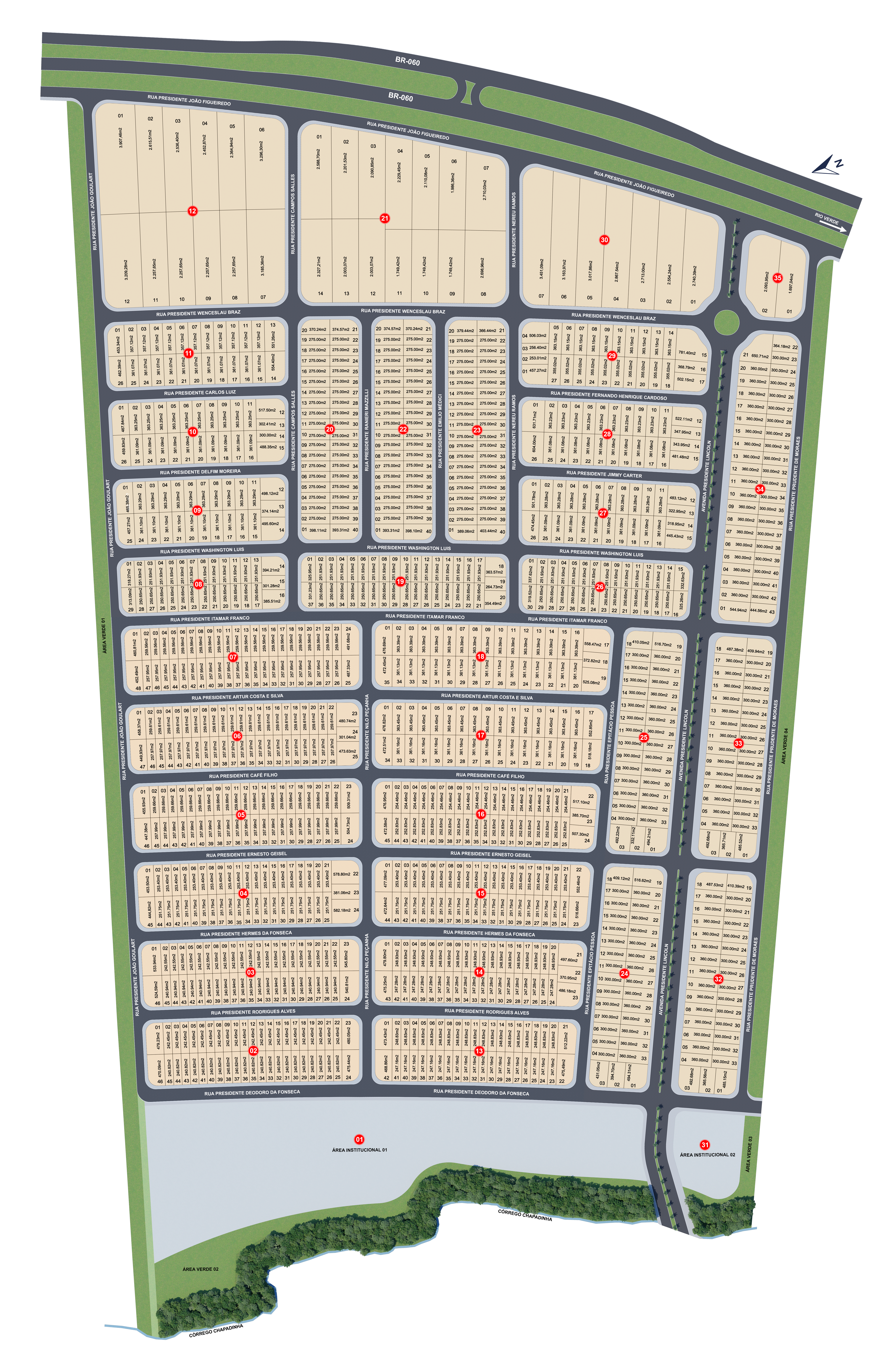 Loteamento aprovado e registrado no C.R.I de Rio Verde, conforme matrícula Nº R.08/M.61.276.